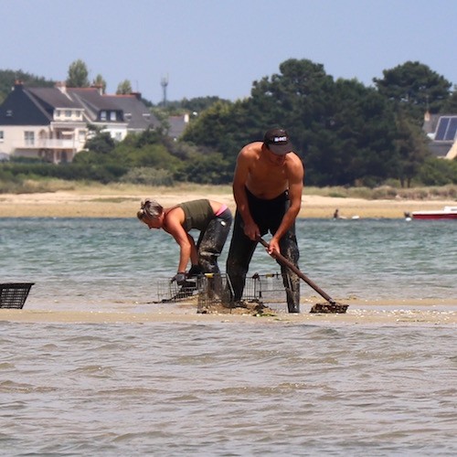 C'est rare, un couple de pêcheurs. Éric & Lucile pêchent les coques à deux et à pied depuis plus de 10 ans, à croire qu'ils se sont rencontrés la première fois en bottes, râteaux et pelles à la main !